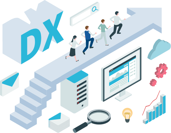 We leverage cutting-edge IT technologies such as cloud computing and AI to promote digital transformation (DX), addressing pressing social issues like labor shortages and long working hours.