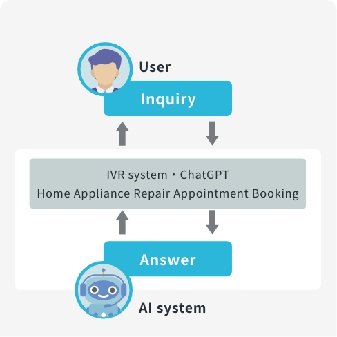(AI-Powered Summarization and Processing)This initiative enables customers to schedule repair appointments for home appliances through an interactive AI system that automatically connects with backend systems—without the need for human operators.